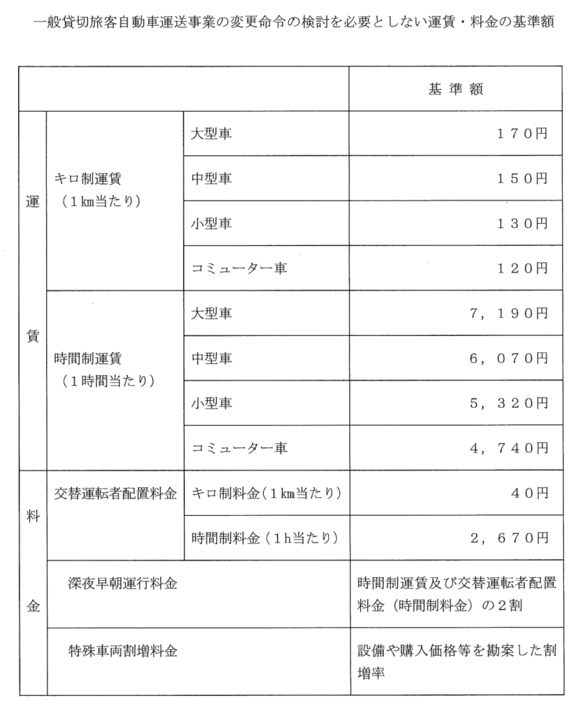 • 配車日時の24時間以降 所定の運賃及び料金の50%に相当する額